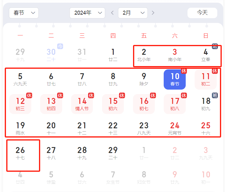 2024年2月2日~2月26日,共25天。
